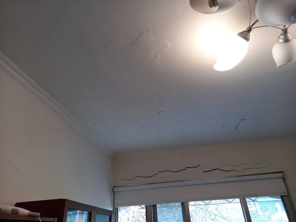 案件說明:四樓天頂處樓板受損嚴重,厚度僅8cm並且有穿孔現象,規劃以樓板打除並重新植筋補筋方式重塑,此案不建議用局部補強修補方式處理。