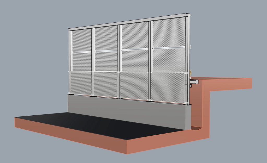 案件說明:社區圍牆傾斜,局部結構基座損壞,第二次討論的版本為拆除既有磚牆,並以沖孔版搭配鋼結構作為新牆體,既可兼具快速施工與吸音功能,替代原始圍牆的透光性、日後維護便利性。